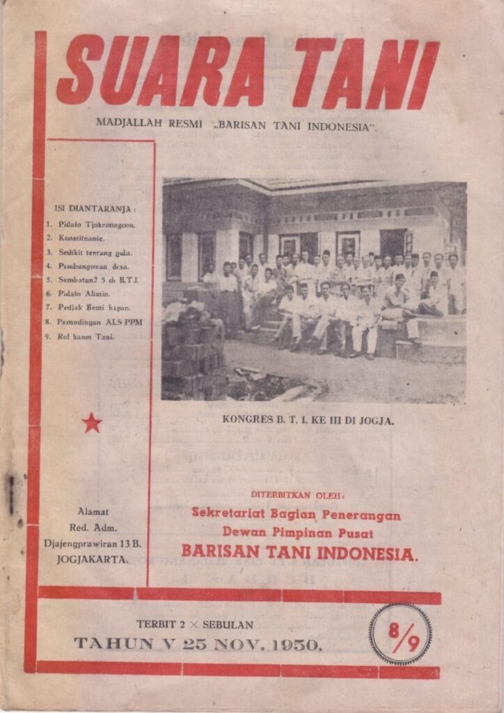 Tale obiettivo viene espresso chiaramente nella rivista ‘Suara Tani’, organo del BTI affiliato al Partito Comunista Indonesiano, nei numeri 8 e 9 (pubblicati congiuntamente) del novembre 1950.