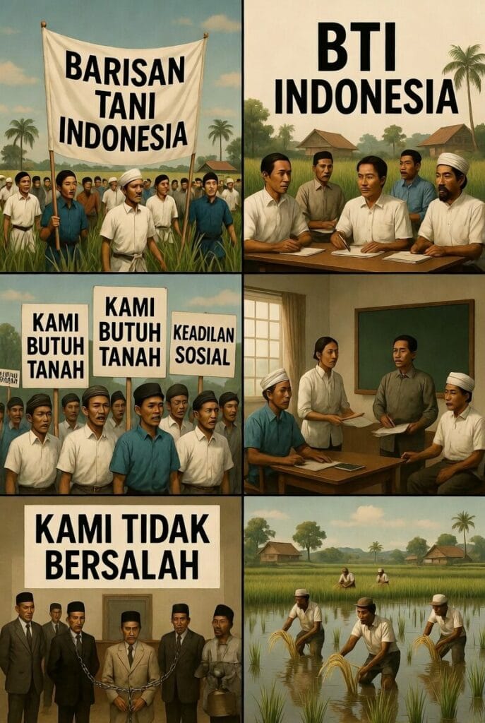 Negli anni ’50, sotto la guida di figure come Asmu (che divenne presidente generale nel 1962 e principale analista agrario del PKI), il BTI elaborò una critica elaborata delle stratificazioni rurali. Divenne celebre lo slogan “Ganyang Tujuh Setan Desa” (“Schiaccia i Sette Demoni del Villaggio”), che si riferiva a latifondisti, usurai, mezzadri, mediatori, capitalisti, burocrati corrotti e contadini ricchi.