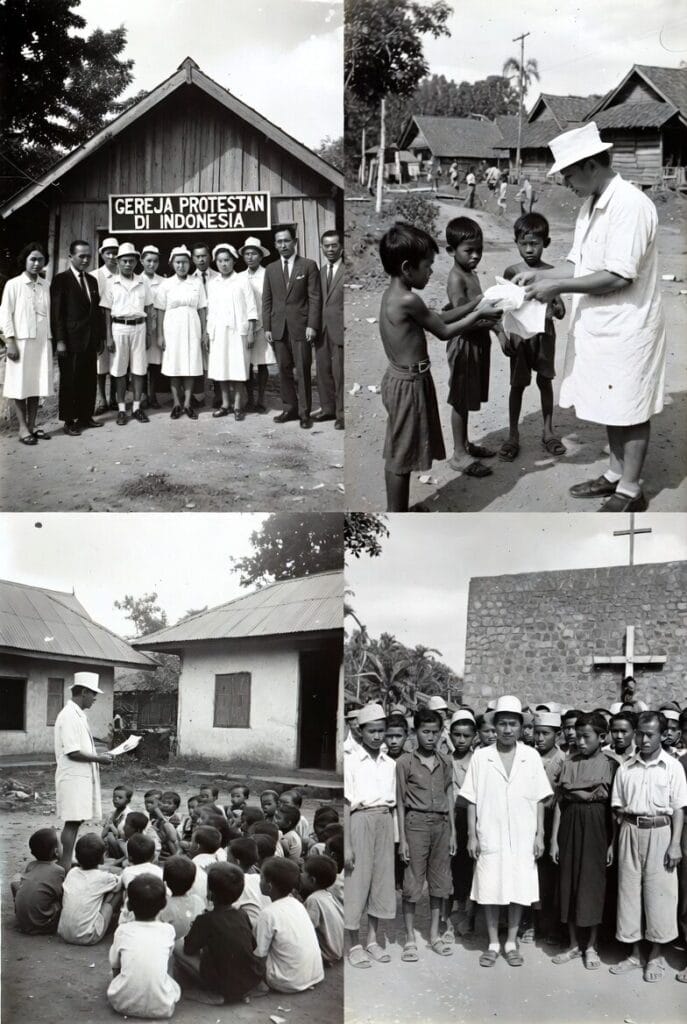 Allo stesso tempo, narrazioni di conversioni “miracolose” da un islam descritto come “superstizioso” (con figure ridicolizzate come il dukun), rischiavano di rafforzare stereotipi negativi e alimentare diffidenze in un Paese a guida musulmana. Negli anni Cinquanta del XX secolo, si verificò la ribellione del Darul Islam (attiva dal 1949 in regioni come Giava Occidentale, Aceh e Sulawesi Meridionale), che mirava a imporre uno stato islamico. Il clima di tensione che ne derivò determinò attacchi o distruzioni di chiese cristiane, mentre la Pancasila fungeva da baluardo contro estremismi sia islamisti che comunisti. Questo contesto spinse le chiese protestanti verso un approccio più dialogante e meno attivo, allo scopo di non apparire ed essere percepite come “straniere” o divisive.
