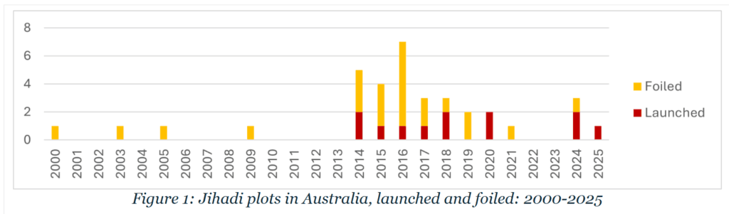 L’autorevole rivista ‘CTC Sentinel’, del Centro Anti-Terrorismo di West Point, USA, ha osservato che, sebbene ci siano stati altri attacchi terroristici in Australia, dal 2000 al 2025, (enfasi e annotazioni mie)