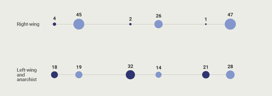 Se invece si considera la situazione del terrorismo ‘di destra’ o di ‘sinistra’, si nota un quadro differente.