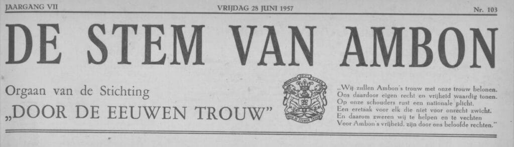 De Stem van Ambon, 28 Giugno 1957, p. 1.