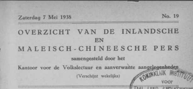 Un esempio, in questo senso, è costituito dall’edizione del 7 maggio 1938 di Ozerzicht van de Inlandsche en Maleisch-Chineesche Pers, Panorama della Stampa Indigena e Malese-Cinese; nel numero in esame, viene riportato, mediante la lente coloniale, il Congresso di Nadhlatul Ulama che si tenne in quell’anno.