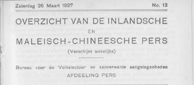 (OVERZICHT VAN DE INLANDSCHEI EN MALEISCH-CHINEESCHE PERS, Panoramica della Stampa Malay-Cinese Indigena, 13, 1927, p. 415)