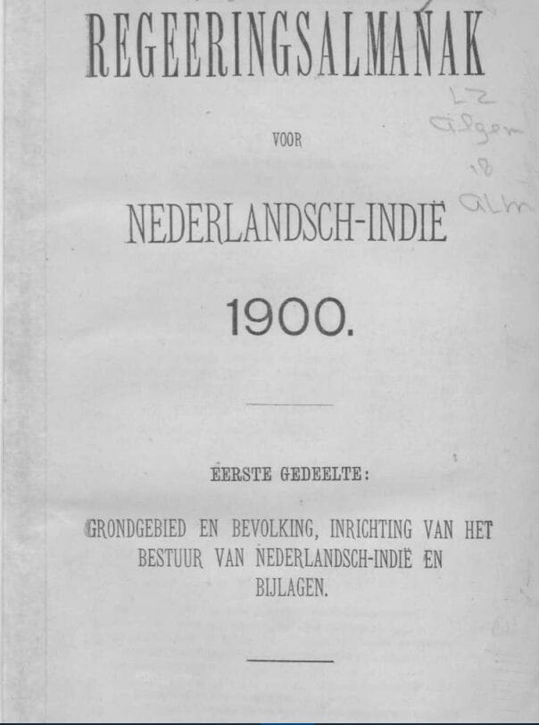 Regeerings Almanak voor Nederlandsch Indie 1900, Almanacco Governativo delle Indie Olandesi, 1900, 1900, p. 14.