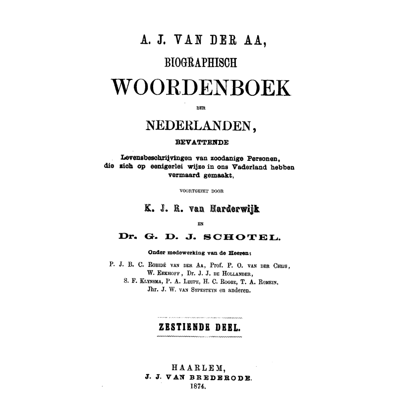 ROORDA VAN EYSINGA (Sytze), nato a Sneek, per ventiquattro anni predicatore a Kuinre, infine a Westzaan, si trasferì all’età di quarantacinque anni da lì con la moglie e tre figli, il 23 dicembre 1818, con l’Henriette Elisabeth, in navigazione verso Batavia, dove rimase attivo in diverse posizioni, tra cui predicatore e supervisore scolastico a Batavia e nel 1821 come visitatore delle chiese e delle scuole di Makassar e delle isole Molucche fino al 1830, quando, durante il viaggio di ritorno, morì vicino a Sant’Elena e fu sepolto su quell’isola. Suo figlio (che segue) pubblicò i vari Viaggi e avventure di suo padre (Amst. 1830) in due volumi, dopo i quali, anche in due volumi, seguì il suo, da quando aveva quattordici anni fino al suo primo ritorno in patria, il 19 giugno 1830.